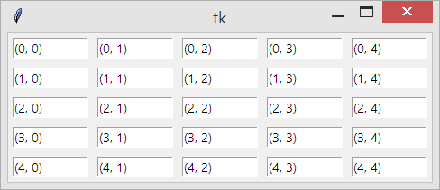 Der erste Wert ist row und der zweite Wert column. Mit pady und padx definieren Sie zusätzliche Abstände.