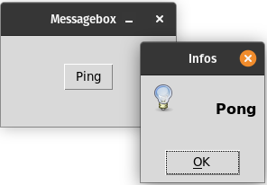 fenster.mainloop()Damit die Messagebox im Programm verfügbar ist muss Sie explizit mit from tkinter import messagebox importiert werden.