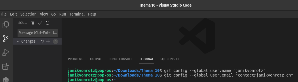 🎬 Starten Sie ein neues Terminal und geben Sie die folgenden Befehle ein. Definieren Sei einen eigenen Benutzernamen und E-Mail defineiren.