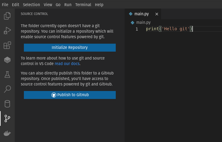 🎬 In VSCode klicken Sie auf die Versionskontrolle und initialisieren das Repo.