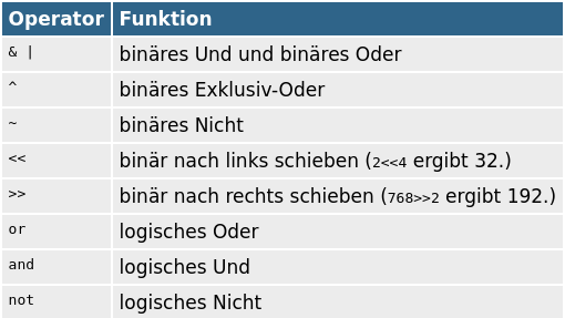 x and (x and y) or (y and x) # Evaluation vollständig geprüftWahre Werte
