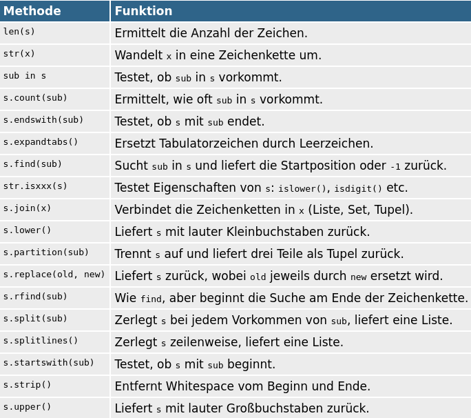 ℹ️ Methoden sind etwas Ähnliches wie Funktionen, Sie werden aber direkt auf die zugrundeliegenden Daten (Objekte) angewendet.