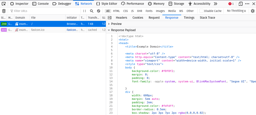 Wird eine Website aufgerufen erhalten wir ein HTML-Dokument als Antwort.