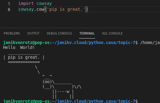 cowsay.cow('pip is great.')Und führen Sie das Programm aus.